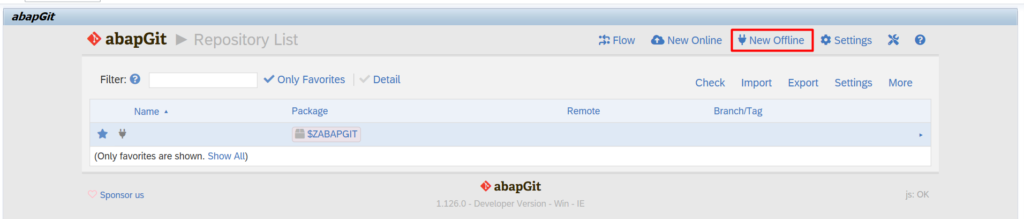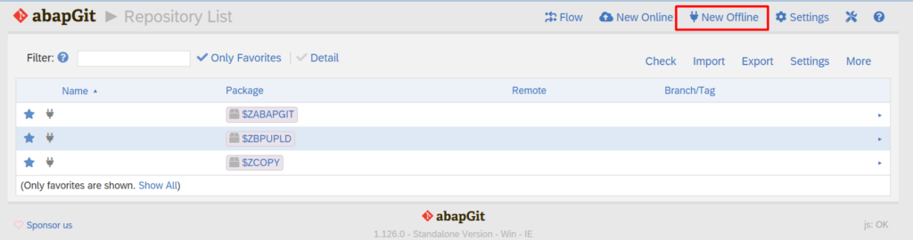 - Run program ZABAPGIT_STANDALONE or Tcode ZABAPGIT