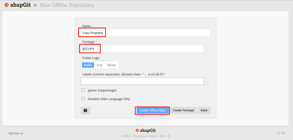 - Input Repository Name and Package , then click “Create Offline Repo”