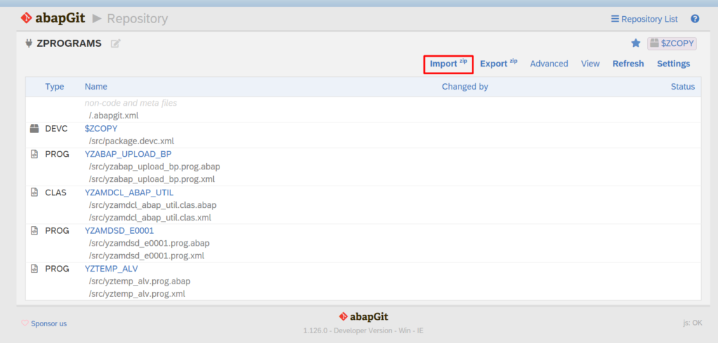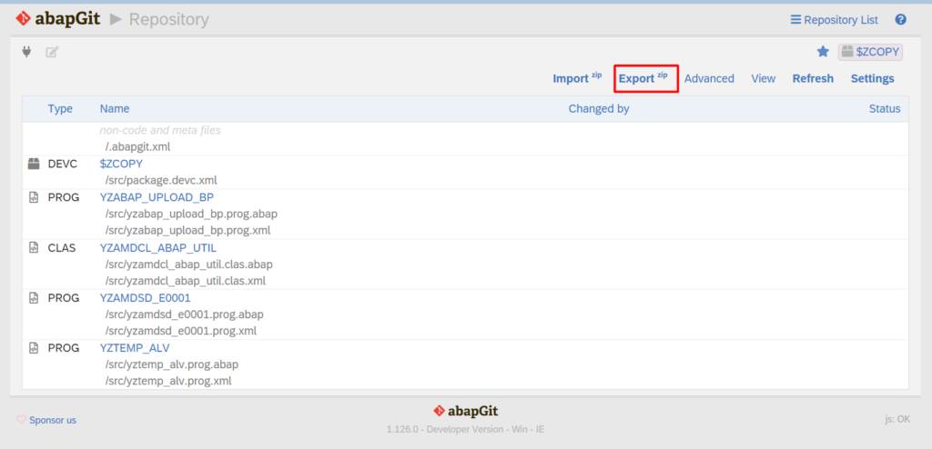 - Open tcode ZABAPGIT