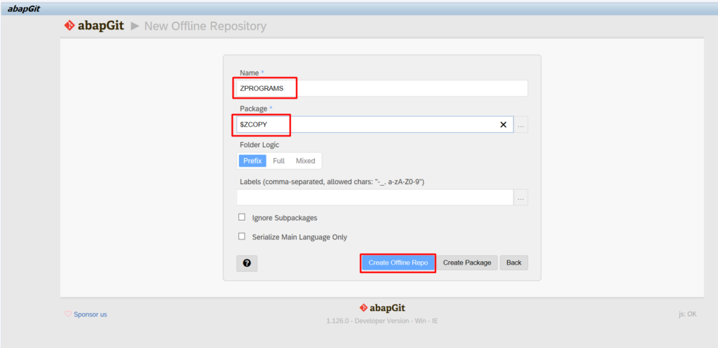 - Create package $ZABAPGIT in SE80 (prefix $ means it is local package)