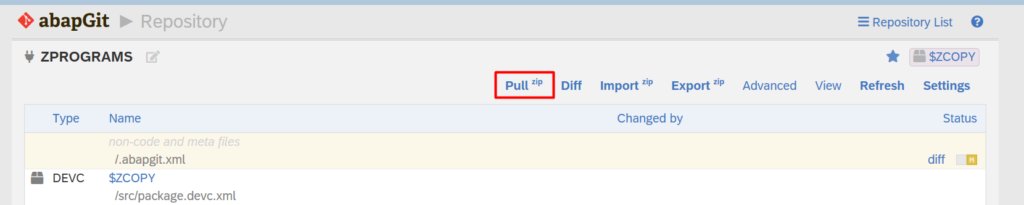 - After success import the ZIP files then click PULL